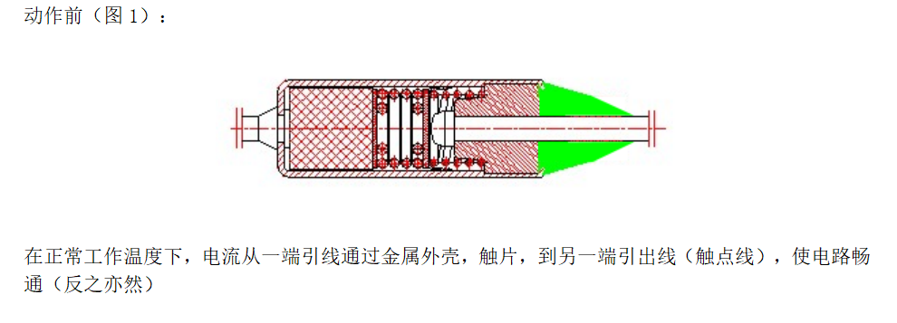 实际动作温度 | 温度保险丝在硅油池内以每分钟 0.5 - 1.0℃速率升温,检测电流小于 10mA 条件下所测得的熔断温度。它是温度保险丝的实际动作温度。 |